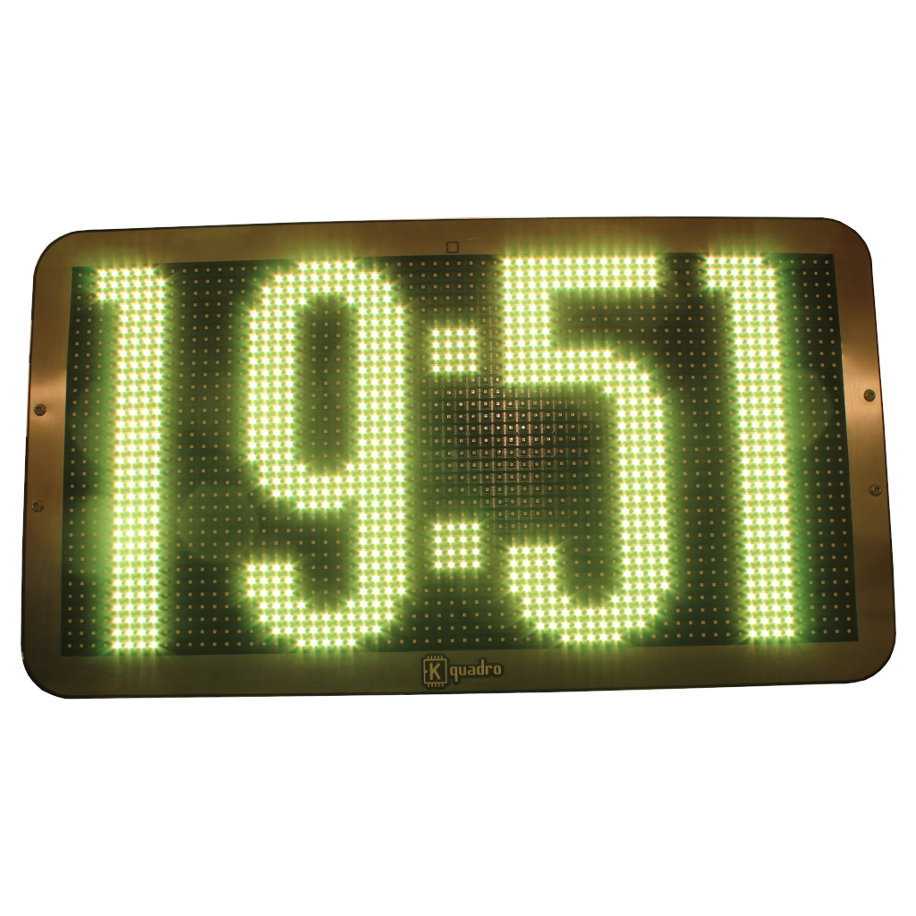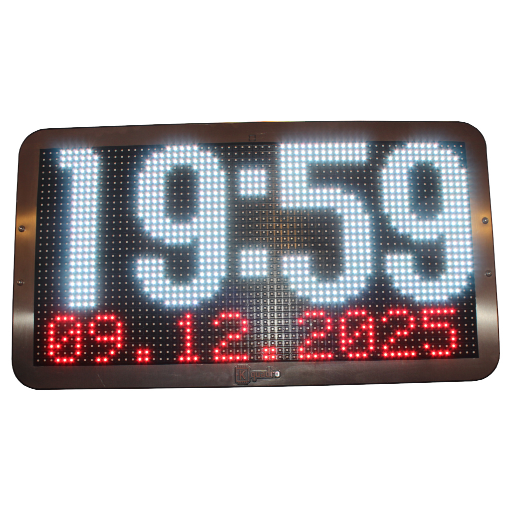 Un orologio ODT di medio formato con cifre a colori dal design moderno ed elegante. Visualizza solo orario oppure orario e data correnti.