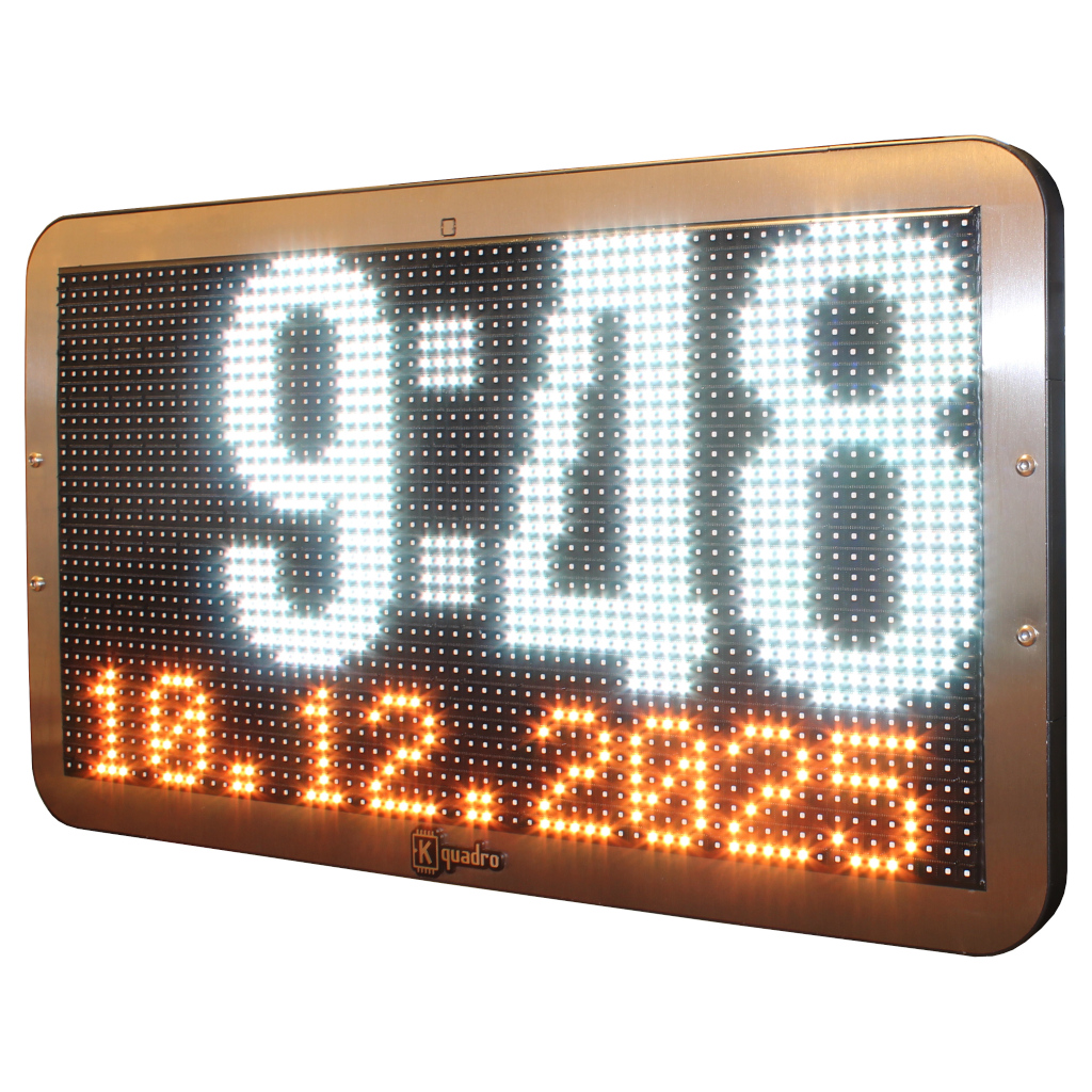 Un orologio ODT di medio formato con cifre a colori dal design moderno ed elegante. Visualizza solo orario oppure orario e data correnti.
