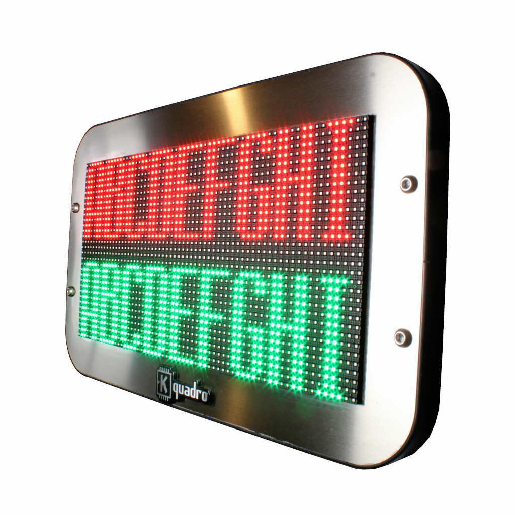 Attraverso il protocollo di comunicazione ModBus TCP è possibile programmare in tempo reale la luminosità del display, il testo da visualizzare, il formato ed il numero di righe. E' possibile anche visualizzare alcuni pittogrammi a colori.